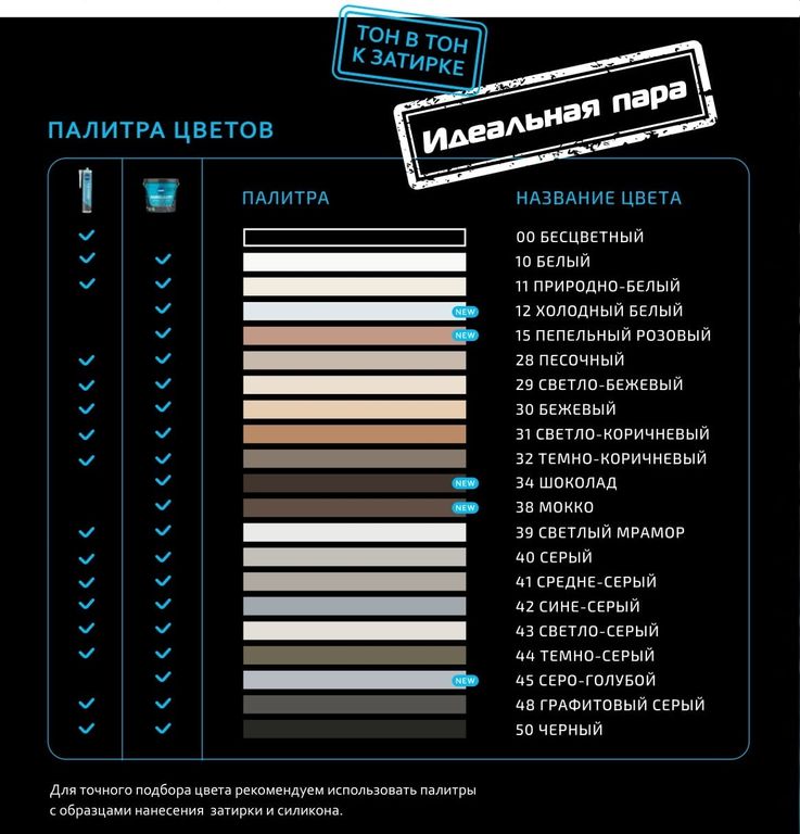Имеет более 20 различных цветовых вариаций в различных фасовках (1 кг, 3 кг, 10 кг), ввиду этого можно подобрать максимально близкий или точный цвет, дополнительно к силикону